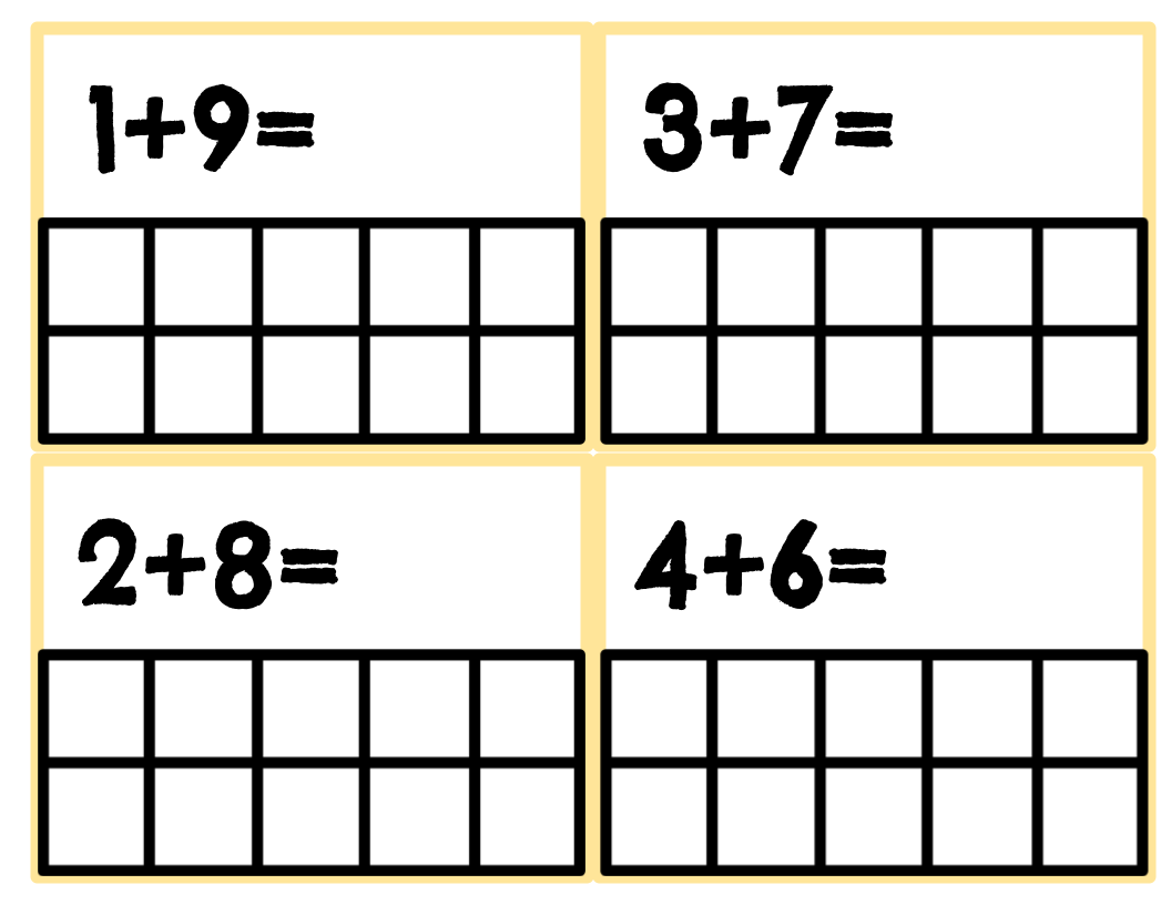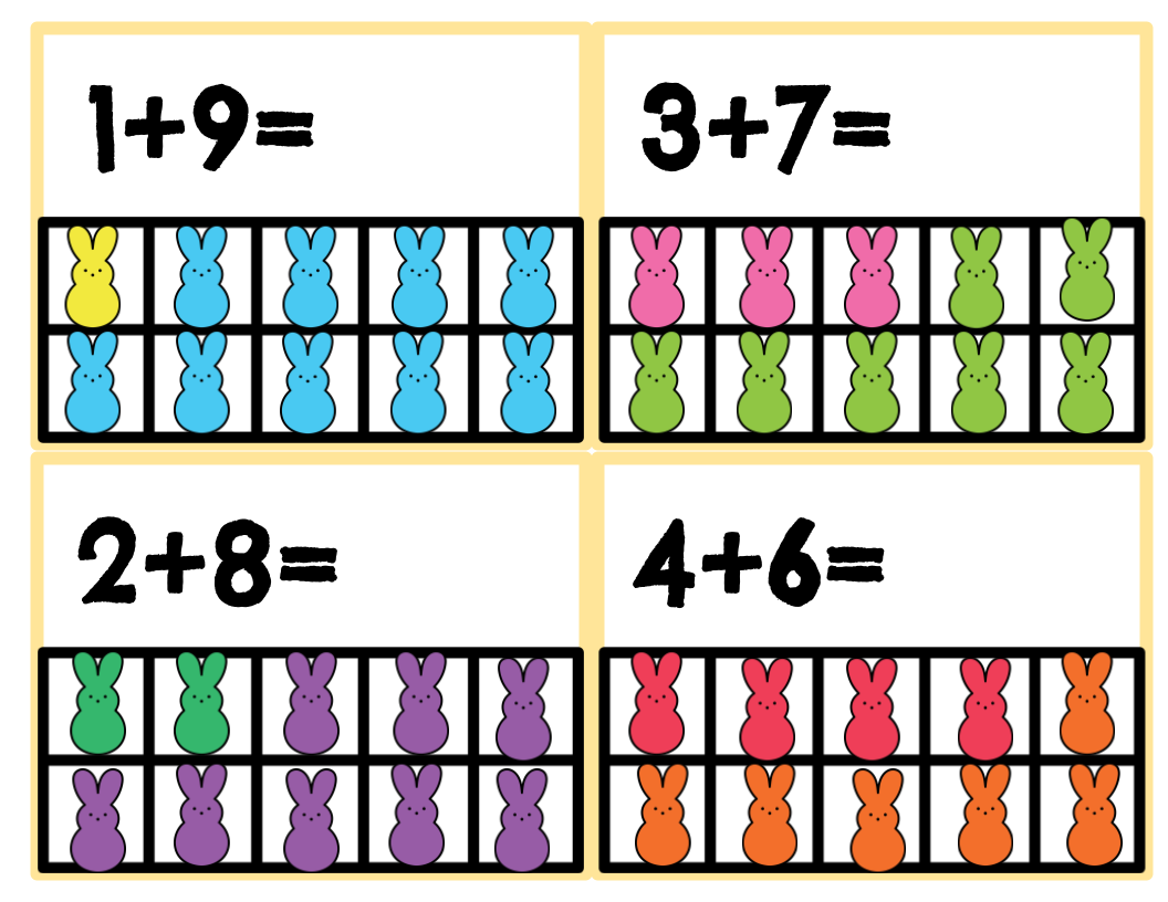 19 colored bunny addition cards, 11 empty addition cards